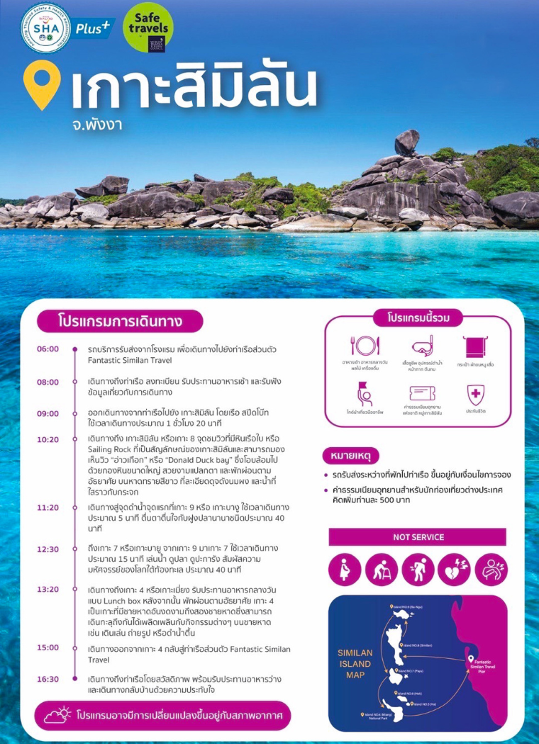 09:00: Head to "Similan Island" by speedboat. Travel time is approximately 1 hour 20 minutes.